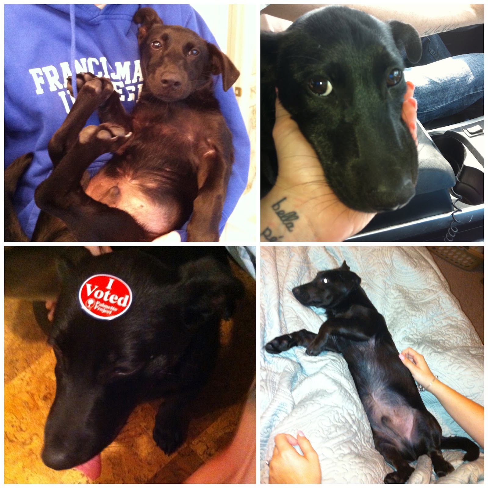 You are turning out to be such a good dog! I'm so happy we adopted you. :) You are slowly becoming house-trained, we are learning each other, and it's fun. Your personality is so different from Zombie's. You are very hard to photograph since you are solid black. You have a fat tummy and you eat more than I would have guessed. You're afraid of doors, which is weird. You copy everything Zombie does and it's funny to watch. It's fun when people compliment you - you have already been chosen over Zombie twice. I think Zombie is a little jealous of the attention we give you. Plus, you're really hyper and I think it gets on his nerves sometimes. You're all puppy, and while that's fun...I do look forward to your "adult" years. :) A few things to remember: mommy's a crazy driver & you're just going to have to adjust; stop taking Zombie's treats from him or you'll never be friends; stop making our home smell like really rank poo. I love your floppy ears. I love that you stay close when we're all outside. You're a happy boy. I'm happy you are ours & that we are yours. :) Welcome to the nut house family!